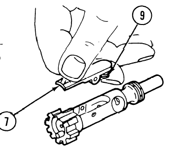 Rimuovere l'Estrattore (7) e la relativa Molla (9). Il Tiratore non dovrà mai procedere alla Separazione della relativa Molla (9) dall'Estrattore.